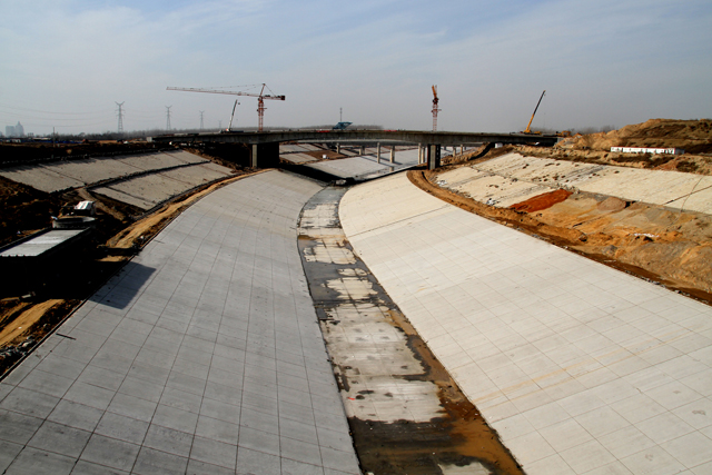 采用復(fù)合土工膜進行渠道防滲的優(yōu)點是很明顯的,土工膜的性能發(fā)揮更好,可以有效防止雜草穿透土工膜,以免引起危害。對于膜結(jié)構(gòu)鋪設(shè)渠道,將渠底找平壓實并刷粘土漿處理,方便接觸面結(jié)合。 鋪好膜后,應(yīng)鋪薄層細土,并加混凝土蓋板。